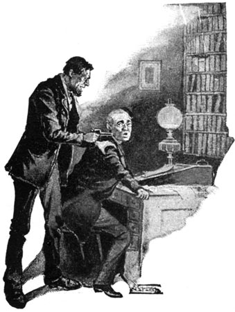 “I don’t want to hurt you,” the dreadful man went on, “unless I can get nobody better to kill. But I mean to kill someone to-night, and I want you to see me do it. You must come with me out into the streets, and go about with me until we find somebody worth killing. You must keep very quiet, utter no cry, give no alarm, excite no suspicion. Otherwise I shall shoot you dead on the spot. I would not mind killing you, the author of so many [Pg 562] stories of crime, but I would rather slay someone of higher social position, and leave you to live and record the deed.”
