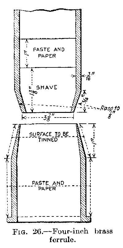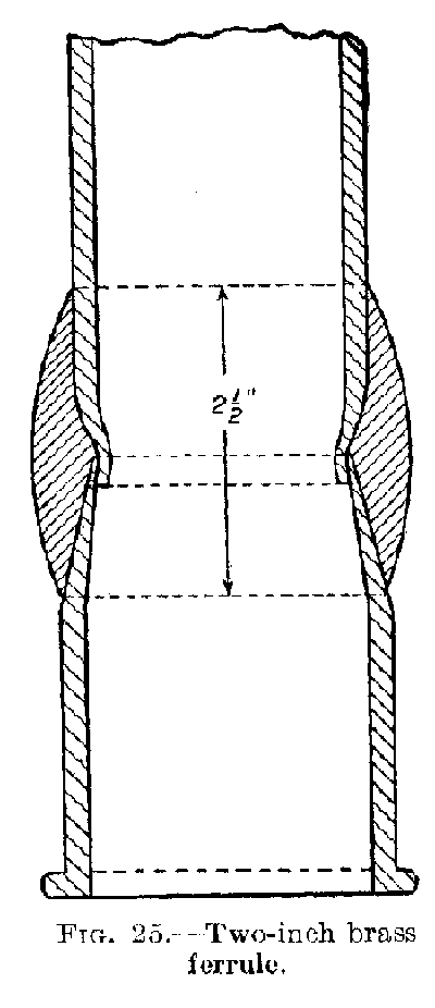 Brass ferrules must be best quality, extra heavy cast brass, not less than 4 inches long and 21⁄4, 31⁄2 and 41⁄2 inches in diameter and not less than the following weights: