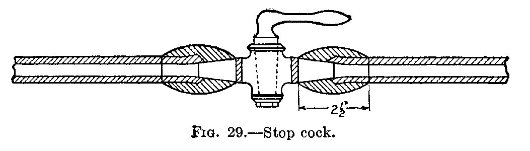 Another soil used is lampblack and glue. A quantity of glue is melted and then lampblack is added. This needs to be heated and water added each time it is used. This soil is put on pipes with a short stubby brush. The work when completed with the silvery joint and jet black borders appears to the uninitiated very artistic and neat, but when the black soil is worn away the uneven edges of the joint appear, disclosing the reason for using a black soil that covers all defects. The mechanic of today who takes pride in his ability for good workmanship will not cover his work with black soil.