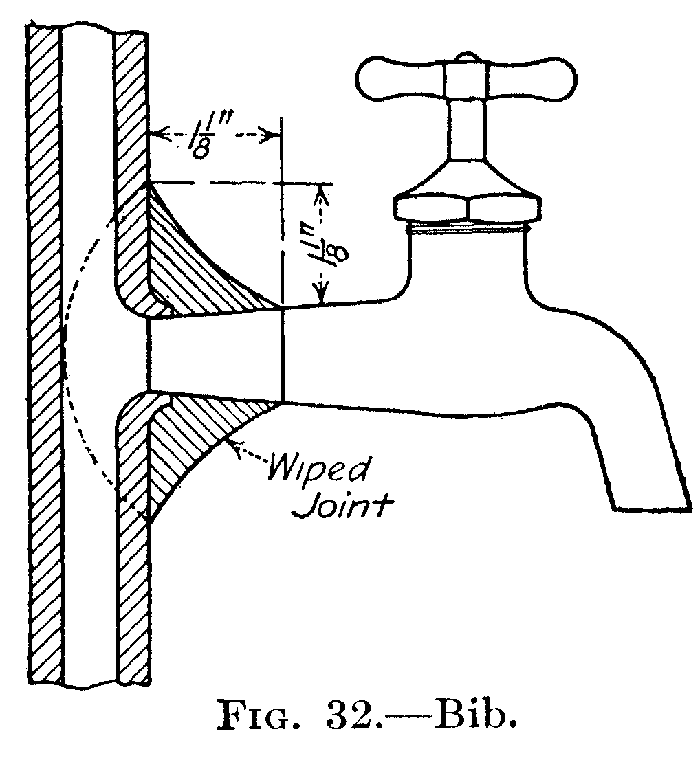Sec. 18. Joints on Soil and Waste Pipes.—Connection on lead and cast-iron pipe shall be made with brass sleeve or ferrule, of the same size as the lead pipe inserted in the hub of the iron pipe, and caulked with lead. The lead must be attached to the ferrule by means of a wiped joint. Joints between lead and wrought-iron pipes must be made with brass nipple, of same size as lead pipe. The lead pipe must be attached to the brass nipple by means of a wiped joint. All connections of lead waste pipes must be made by means of wiped joints.