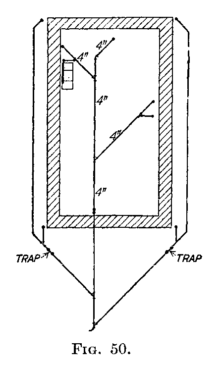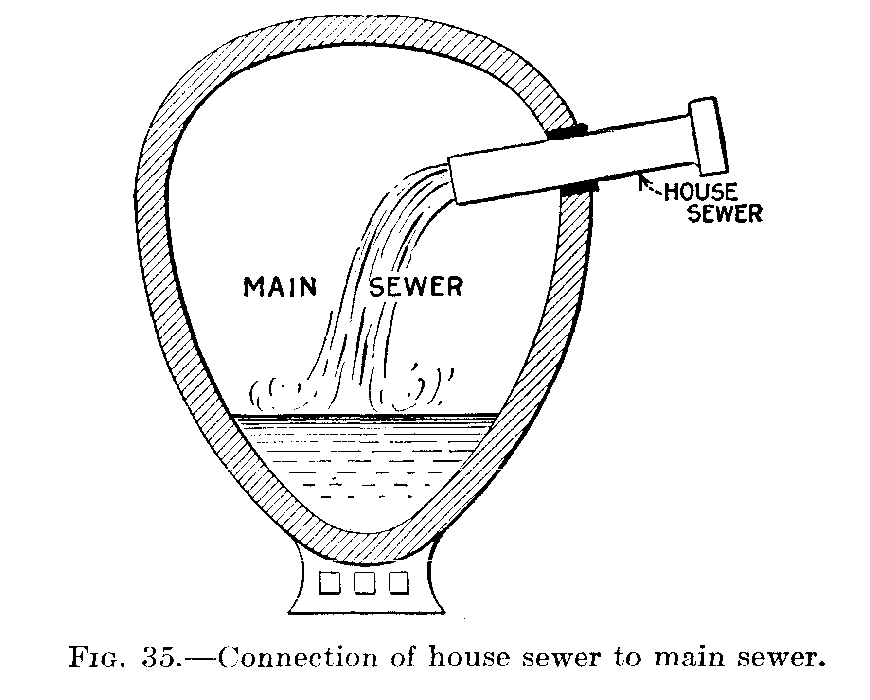 In the early years of the trade the question of the disposal of the waste water was easily answered, for it was allowed to be discharged onto the ground to seek its own course. But with the increased amount of water available, the waste-water problem has enlarged until today it plays the most[2] important part of plumbing, and the trade has had to change to meet this waste-water problem.
