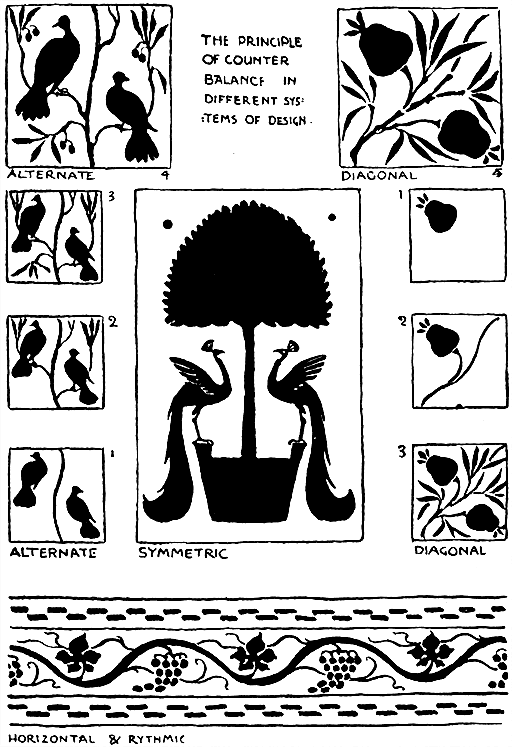 The ancient art of the East was all frankly pattern-work, whatever the subject pictured. Egyptian, Persian, Indian, Chinese, Moorish and Arabian art, in all their varieties, show the dominating sense of pattern, and the invention of the instinctive decorators in the use of colour.