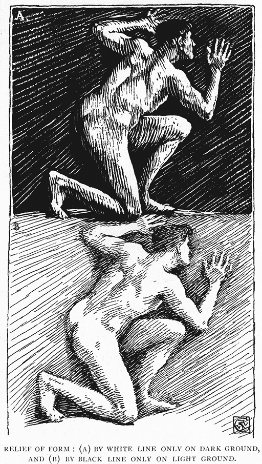 Our earliest ideas of form are probably derived through the different colours of objects around us, by which they are thrown into relief upon the background, or against other objects; and, as I mentioned in the first chapter, we reach outline by observing the edges of different masses relieved as dark or light upon light or dark grounds, so now, in my last, we come again to the consideration of the definition of line and form by colour, and their relief and expression upon different planes or fields of colour.
