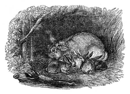 Their kind papa had bought the little rabbit for Frank and George; and John was going that very day to make a rabbit hutch, and fix it up in the yard, for he was very clever in making such things. Before night, if they had been wise enough to wait, they would have seen the little grey rabbit in its hutch, and might have given it green leaves and clover to nibble. But this was all over now; and it was owing to their fault that they had lost the young rabbit.