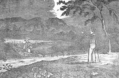 Rollo followed the path along the banks of the brook under the trees, until at length he came out to the open ground where Jonas was at work. There was a broad meadow, or rather marsh, which extended back to [Pg 20]some distance from the brook, and beyond it the land rose to a hill. Just at the foot of this high land, at the side of the marsh farthest from the brook, was a pool of water, which had been standing there all summer, and was half full of green slime. Jonas had been at work, cutting a canal, or drain, from the bank of the brook back to this pool, in order to let the water off. The last time that Rollo had seen the marsh, it had been very wet, so wet that it was impossible for him to walk over it; it was then full of green moss, and sedgy grass, and black mire, with tufts of flags, brakes, and cranberry-bushes, here and there all over it. If any person stepped upon it, he would immediately sink in, except in some places, where the surface was firm enough to bear one up, and there the ground quivered and fluctuated under the tread, for some distance around, showing that it was all soft below.