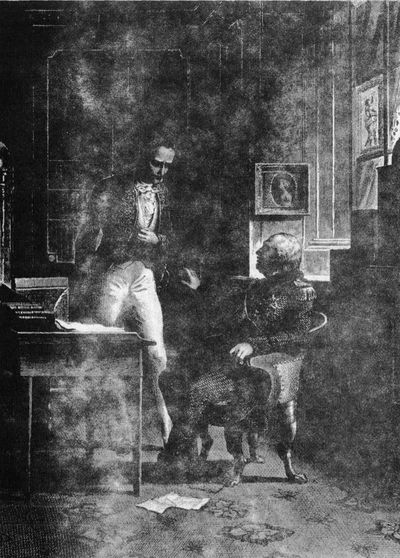 La nouvelles du débarquement de Bonaparte à Cannes était arrivée à Vienne le 6 mars[14], au milieu d'une fête où l'on représentait l'assemblée des divinités de l'Olympe et du Parnasse. Alexandre venait de recevoir le projet d'alliance entre la France, l'Autriche et l'Angleterre: il hésita un moment entre les deux nouvelles, puis il dit: «Il ne s'agit pas de moi, mais du salut du monde.» Et une estafette porte à Saint-Pétersbourg l'ordre de faire partir la garde. Les armées qui se retiraient s'arrêtent; leur longue file fait volte-face, et huit cent mille ennemis tournent le visage vers la France. Bonaparte se prépare à la guerre; il est attendu à de nouveaux champs catalauniques: Dieu l'a ajourné à la bataille qui doit mettre fin au règne des batailles.