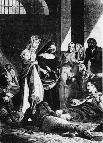 Note 391: C'est en 1819 que Mme Récamier se retira à l'Abbaye-aux-Bois, dans un petit appartement au troisième étage, carrelé, incommode, dont l'escalier était des plus rudes à monter, ce qui ne l'empêchait pas d'être gravi chaque jour par les plus grandes dames du faubourg Saint-Germain et par tout ce que Paris comptait d'illustrations.[Retour au Texte Principal]