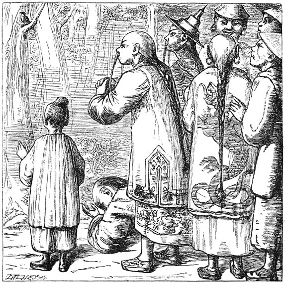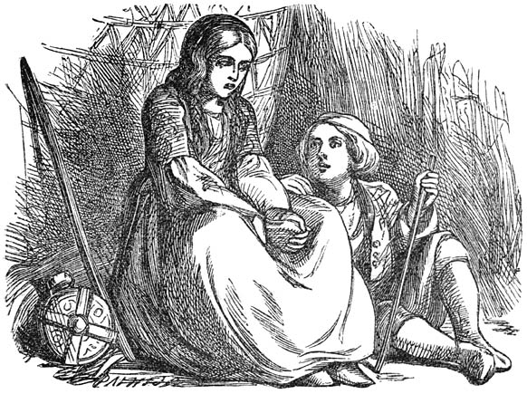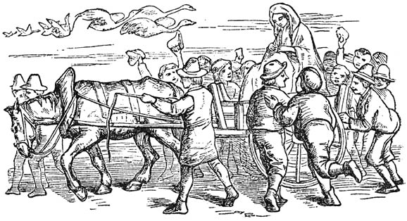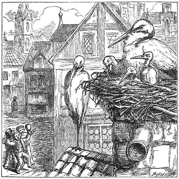 «Ik zal naar hen toe vliegen, naar die koninklijke vogels! Maar zij zullen mij dooden, omdat ik, die zoo leelijk ben, mij in hun nabijheid durf wagen. Maar dat doet er niet toe! ’t Is beter, door hen gedood, dan door de eenden gebeten, door de kippen gepikt, [15]door de meid, die aan de kippen eten geeft, geschopt te worden en in den winter gebrek te lijden!»