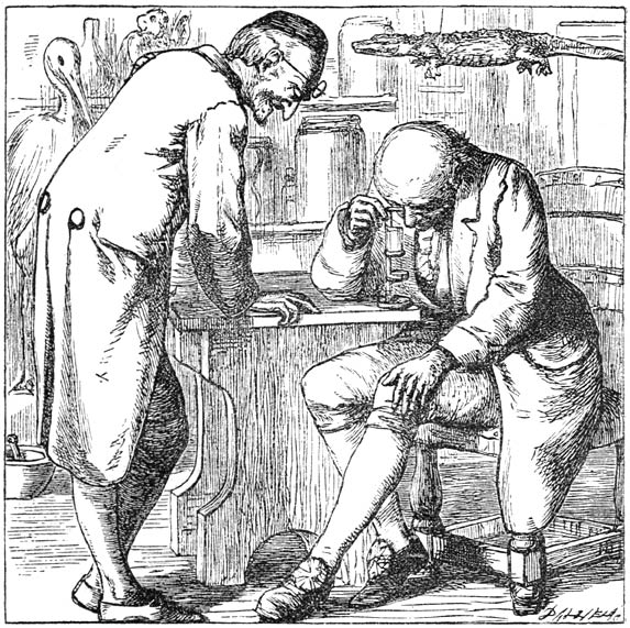 Op het brugje, dat over de goot lag, stonden drie personen, die zich aan de lantaarn wilden voorstellen; want zij verkeerden in den waan, dat deze den post zelf te begeven had. De eerste persoon was een haringkop, die in de duisternis insgelijks licht van zich kon geven. Hij beweerde, dat het heel wat olie zou uithalen, als hij op den lantaarnpaal geplaatst werd. De tweede was een stuk vermolmd hout, dat ook licht rondom zich verspreidt. Het was, zeide het, van een ouden stam afkomstig, eenmaal het sieraad van het bosch. De derde persoon was een glimwormpje; waar dit vandaan gekomen was, begreep de lantaarn niet, maar het was er, en licht geven kon het ook. Het vermolmde hout en de haringkop zwoeren echter bij alles, wat hun heilig was, dat het slechts op bepaalde tijden licht van zich gaf en dat het daarom volstrekt niet in aanmerking kon komen.
