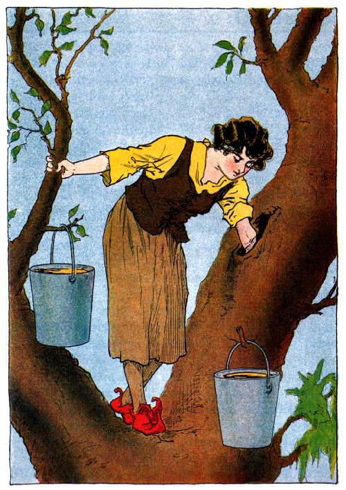 When studying his lessons Prince Inga used to go into the grove near his father's palace and climb into the branches of a tall tree, where he had built a platform with a comfortable seat to rest upon, all hidden by the canopy of leaves. There, with no one to disturb him, he would pore over the sheepskin on which were written the queer characters of the Pingarese language.