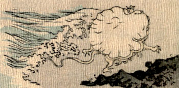 The Monkey thought it would be fun to see a new country. So he leapt on to the Jelly-Fish’s back, and off they started across the water. But when they had gone about half-way, he began to fear that perhaps there might be some hidden danger. It seemed so odd to be fetched suddenly in that way by a stranger. So he said to the Jelly-Fish: “What made you think of coming for me?” The Jelly-Fish answered: “My Master, the King [14]of the Dragons, wants you in order to cut out your liver, and give it as medicine to his wife, the Queen, who is sick.”