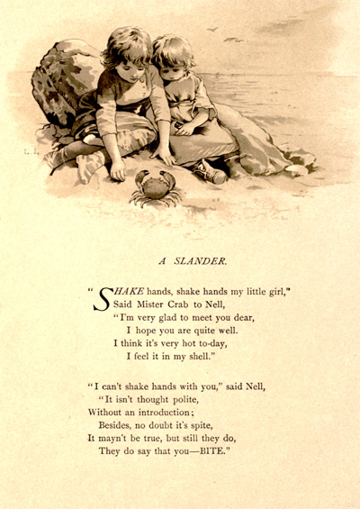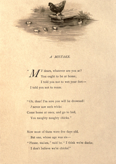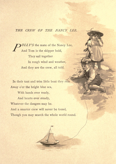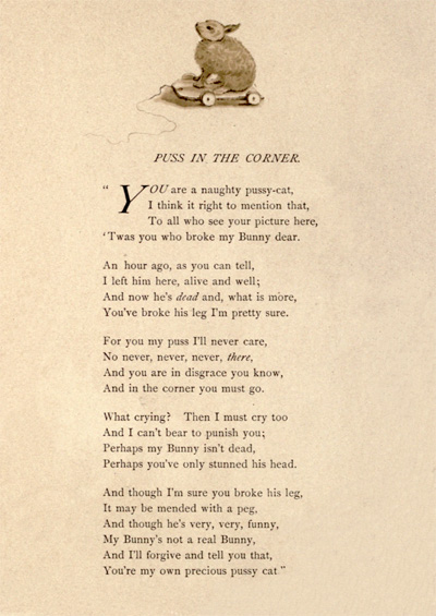 In the first line of the second verse of The Pet Rabbit “than” has been changed to “then”. An apostrophe has been added to the title of “Father’s Boat“ and a hyphen added to “to-night”.