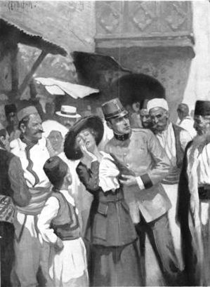 At the sound a man suddenly appeared in the gate, and beside him a very beautiful young woman. Colonel Galenski was a good officer, but the fact, though of no military importance, was quite clearly to be noted—a very beautiful woman. The man beside the girl was tall, and bore himself well. But he was covered with grime and dust and his clothing was torn and streaked with blood. One sleeve of his shirt was missing, and his bare arm was bandaged just below the arm-pit with a bloodstained cloth. And as he looked, the man smiled and saluted.