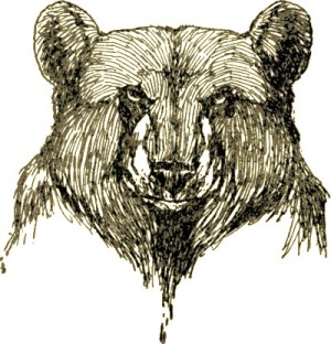 The bear was rank, rusty-coated, old, and hungry; and he loved sheep. He was an adept in stalking this sweet-fleshed, timorous quarry, and breaking its neck with a well-directed blow as it dashed past him in a panic. Emerging from the swamp, he crept up the hill, taking cunning advantage of every bush, stump, and boulder. For all his awkward looking bulk, he moved as lightly as a cat, making himself small, and twisting and flattening and effacing himself; and never a twig was allowed to snap, or a stone to clatter, under his broad, unerring feet.