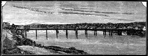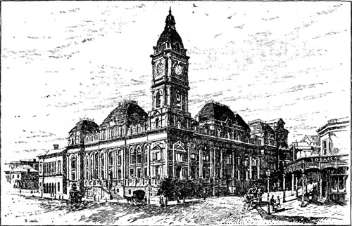 2. Collins.—During this same year, 1803, the British Government, moved by fears of a French occupation, had resolved to form a settlement on the shores of Port Phillip. Accordingly David Collins, who had been judge-advocate at Sydney, but had taken a trip to England, was chosen to be Lieutenant-Governor of the new colony, and was despatched with 307 convicts, 24 [Pg 33] wives of convicts, 51 soldiers, and 13 free settlers, on board two ships, the Calcutta and the Ocean. Collins had made an effort to form a settlement at Port Phillip, on a sandy shore, near the site of Sorrento, but had grown disgusted with the place; and early in 1804 he carried off all the people, and resolved to abandon Port Phillip in favour of the Derwent. He landed at Risdon on the 15th February, and, after a short examination, came to the conclusion that the situation was unsuitable. Next day he went in search of a better place, and chose a little bay on the opposite side, some six miles nearer the mouth of the estuary, and thither the whole settlement was soon after removed. There, at the very foot of the lofty Mount Wellington, Hobart Town began to grow in its new situation. Houses were rapidly erected; most of them consisted of posts stuck in the ground, interwoven with twigs of wattle trees, and then daubed over with mud. The chimneys were built of stones and turf, and the roofs were thatched with grass. Whilst the new town was growing, a party of convicts and soldiers was still busy on the little farms at Risdon, and early in May they had a most unfortunate affray with the natives. A party of two or three hundred blacks, who were travelling southward, came suddenly in sight of the white men and their habitations. These were the first Europeans whom they had seen, and they became much excited at the strange spectacle. While they were shouting and gesticulating, [Pg 34] the Englishmen thought they were preparing for an attack and fired upon them. The blacks fled and the white men pursued them, killing about thirty of the unfortunate natives. Thus was begun a long warfare, which ended only with the complete extinction of the native races.
