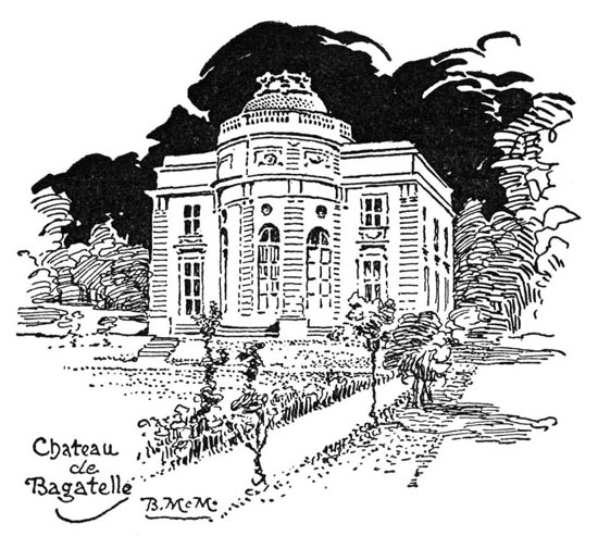 To the left extends the vast Jardin Anglais—a veritable French Jardin Anglais. Let not one overlook the distinction: On conventional lines it is pretty, dainty and pleasing, but the species lacks the dignified formality of the Italian garden or the ingenious arrangement of the French. Its curves and ovals and circles are annoying after the lignes droites and the right angles and the broderies of the French variety.