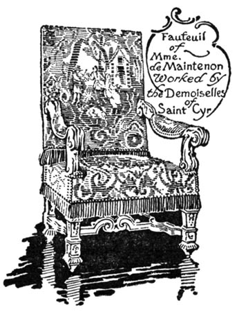 The sleeping-room of the Empress Eugenie is fitted up after the style of the early Empire with certain interpolations of the mid-nineteenth century. The most distinct feature here is the battery of linen coffers which Marie Louise had had especially designed and built. The Salon des Dames d'Honneur, with its double rank of nine "scissors chairs," the famous tabourets de cour, lined up rigidly before the canapé on which the empress rested, is certainly a re[Pg 353]markable apartment. This was the decor of convention that Madame Sans Gene rendered classic.