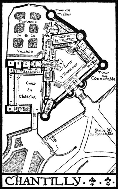 Among all the palatial riches neighbouring upon Paris, not forgetting Versailles, Compiègne, Fontainebleau, Pierrefonds and Rambouillet, Chantilly, by the remarkable splendour of its surroundings, its situation and the artistic treasures which it possesses, is in a class by itself. It is a class more clearly defined by the historic souvenirs which surround it than any other contemporary structure of this part of France.