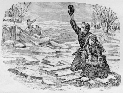 BEN SWUNG HIS HAT AND SHOUTED, AND AT LAST CAUGHT THE NOTICE OF THE PEOPLE ON THE BANK.—P. 51.