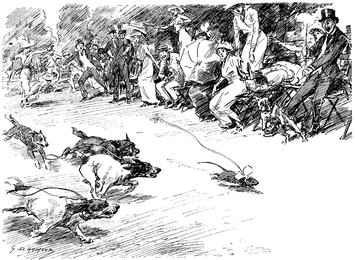 Mr. Victor Bridges has a very versatile pen and in most of the twenty-one pieces of Jetsam (Mills and Boon) which he has recovered from the waves of monthly magazines and elsewhere there is a certain amount of material for mirth. I do not however find him a startlingly original humorist, whether on the river Thames, where he seems to follow in the wake of Mr. Jerome K. Jerome, or in a Chelsea “pub,” where his manners are reminiscent of the characters of Messrs. W. W. Jacobs and Morton Howard. Again, in the story called “The First Marathon” (where, by the way, he states that “It is true that the word ‘Marathon’ was first used in connection with the old Olympian games,” which seems a little unfair to Miltiades), the fun mainly depends on the use of such phrases as “Spoo-fer,” “King Kod,” and the “Can’t-stik-you-shun-all Club.” Other stories are of the adventurous or romantic type sacred to serial fiction, no fewer than three dealing with escaped convicts on Dartmoor, and one (the first in the book) describing the chance meeting of a man and a pretty girl on an uninhabited island off the West Coast of Scotland. Here, for some reason or other, the man insisted on calling his charming and unknown companion Astarte, a name which, if I had been in her place, I should have been inclined to resent. But Mr. Bridges’ dialogue is nearly always bright, and his knowledge of the machinery of yarn-spinning excellent. There is just one other point however which I should like to mention. The book includes a brand-new Russian wolf-story, in which the heroes protect themselves from the bites of these ferocious quadrupeds by putting on armour, which they find in a deserted house. I don’t object to that; but, when they leave the railway line along which they have been travelling and plunge into a forest-path they come to a place where the route forks and cannot make out which of the two roads will be more likely to lead them back to the railway. I do not feel that these men were the sort of people to be trusted to wander by themselves in a desolate Siberian anecdote.