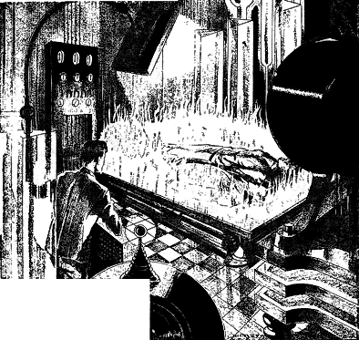 The little door had swung open again, and Eric led Nada through. They stepped into a little cell, completely surrounded with mirrors and vast prisms and lenses and electron tubes. In the center was a slab of transparent crystal, eight feet square and two inches thick, with an intricate mass of machinery below it.