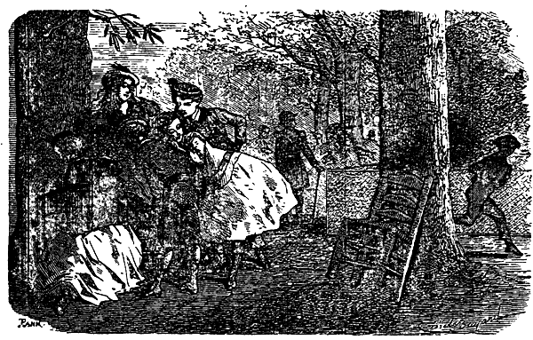 Restés seuls, les enfants consolèrent Lionnette et Héloïse; ils aidaient la bonne à réparer le désordre de leurs vêtements, lorsque de grands cris se firent entendre de nouveau: Héliogabale parut à son tour, suivi de loin par deux soldats. Le petit garçon se sauvait à toutes jambes en pleurnichant lorsqu'il aperçut sa bonne, poussa un cri de joie et s'élança vers elle.
