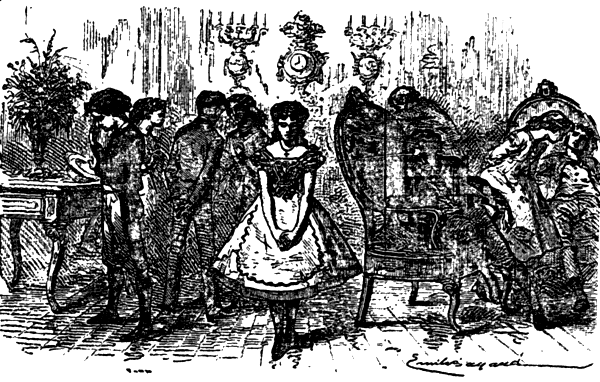 Non, ce ne sont plus mes amies; je veux rester ici avec Élisabeth, Noémi, Irène, Jeanne et Françoise, que j'ai sottement dédaignées. Héloïse n'est qu'une ingrate et une égoïste. (Aux petites filles qui l'entourent.) Chères amies, voulez-vous de moi? je serais si heureuse de redevenir votre amie, d'être simple et gentille comme vous toutes!