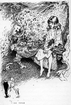 Hoodie had to look round. What a face! Red eyes, tangled hair, frowning forehead, tight shut lips. No, the good angels had not yet found their way back to Hoodie's heart—the little black dog was still curled up on her back, scowling at every one that came near.