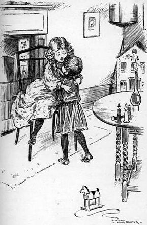 "Maudie is worser," Hoodie was saying, "Maudie is worser, and if she keeps getting worser she'll die. And it wasn't Maudie's fault that she got the affection fever. It was Hoodie's fault. Oh, please, dear God, make Maudie better, and Hoodie won't mind if she gets the fever, 'cos it was her fault. Hoodie's been so naughty, and poor Maudie's good. And everybody loves Maudie, but nobody can love Hoodie. So please, dear God, make Maudie better," and then she ended in her usual fashion—"For Jesus Christ's sake. Amen."