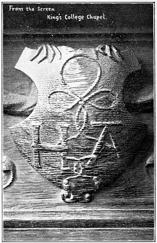 It is stated that in the year 1506 sufficient progress had been made in the building to admit of the performance of divine service, at which Henry VII and his mother, Margaret Countess of Richmond, Foundress of St. John's and Christ's Colleges, who were on a visit to Cambridge, were present; and it is said that John Fisher, President of Queens' College, Bishop of Rochester, took part as chief celebrant. Professor Willis, in The Architectural History of the University of Cambridge, takes exception to this statement. He is of opinion that, as the Screen and Stall work was not finished until 1536, and as the old Chapel[4] did not fall down until 1537 (in fact it was used on the eve of the day on which[6] it fell), it is unlikely that the new chapel was used for service until that time. He further quotes Dr. Caius to strengthen this view.