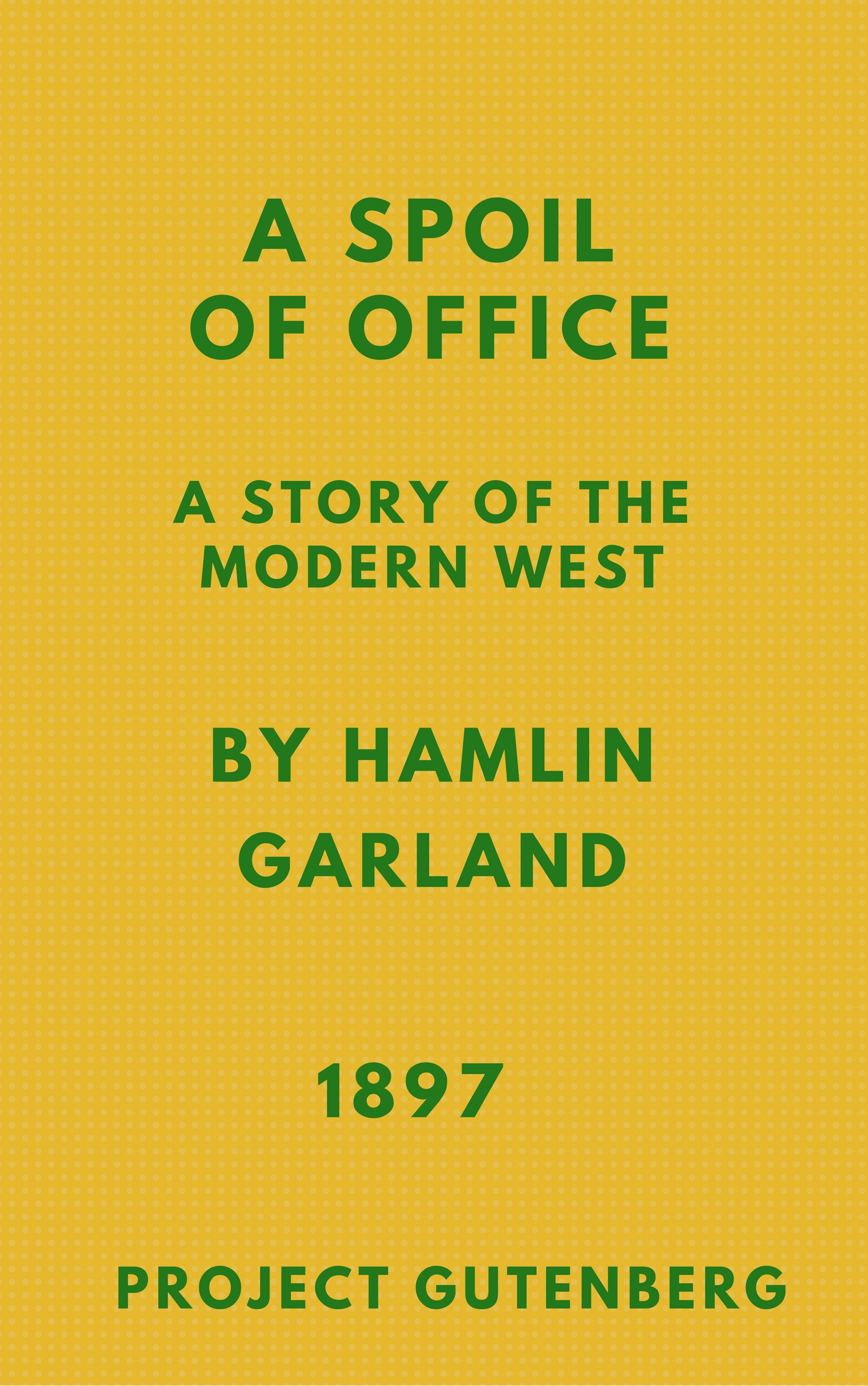 Welcome to Project Gutenberg's edition of A Spoil of Office by Hamlin Garland. A scanned copy of this book is available on Hathitrust courtesy of Cornell University. For background on the themes of this novel, such as the Grange and the People's Party, please see The Agrarian Crusade by Solon Buck, a volume from the Chronicles of America series produced by Yale University in the public domain.