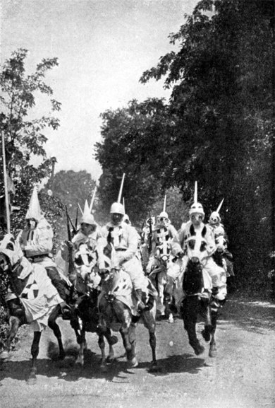 In the darkest hour of the life of the South, when her wounded people lay helpless amid rags and ashes under the beak and talon of the Vulture, suddenly from the mists of the mountains appeared a white cloud the size of a man’s hand. It grew until its mantle of mystery enfolded the stricken earth and sky. An “Invisible Empire” had risen from the field of Death and challenged the Visible to mortal combat.