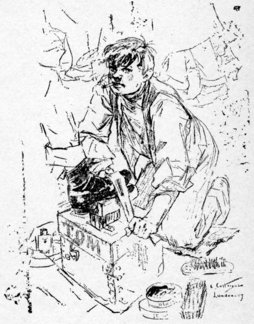 And Trampy put down his cigar, took off his collar and cuffs and it was, “Come along, Lily!” till lunch-time. The child, her eyes blinking with fatigue, fell fast asleep before the end of the meal.