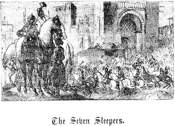On the eleventh morning she descried, in the valley before her, a noble and beautifully situated town; and behold, as she drew nearer to the gates, there came from thence a multitude of horsemen, who surrounded her upon the highway, threw themselves on the ground before the hoofs of her horse, kissed her garment, and hailed her as the Sultan sent to them by the especial care of Heaven. Each man clapped his hands, and exclaimed, Allah jausur es Sultaun![18] that is to say, God give victory to the Sultan, King of the world—blessed be thy coming!