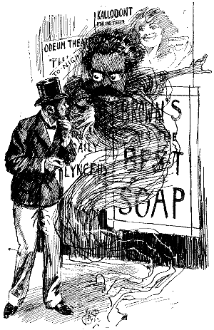 Then the lurid posters on paling and chimney-stack