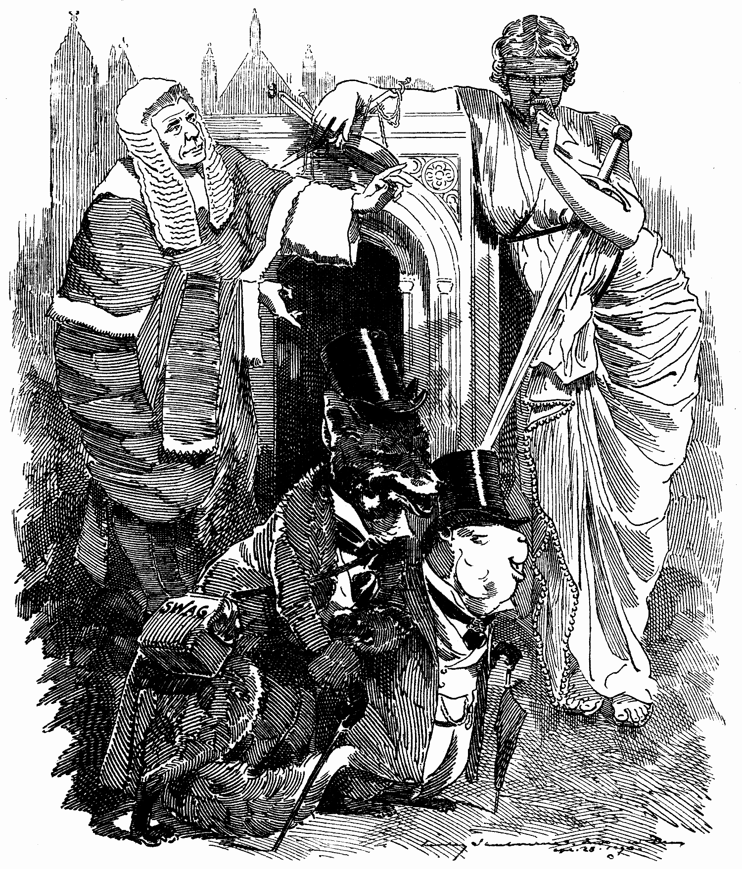 Sir Henry Hawkins (to Justice). "I can't touch them. It's time You did!" [See next page.]