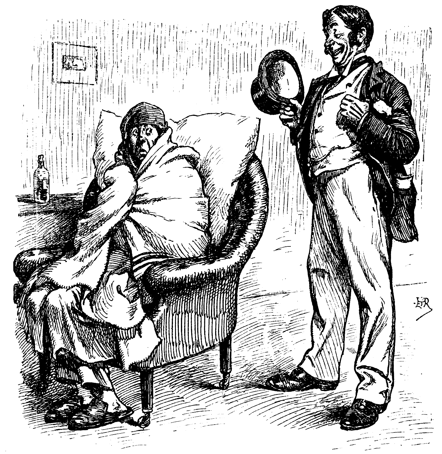 "Oh—well—there's some of that Potted Ham still left we had for Breakfast yesterday. It's just on the turn, you know, so you may as well finish it Downstairs. It will do very well for your Dinner to-day, and To-morrow you shall each have an Egg!"
