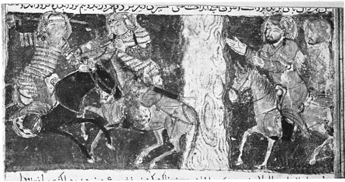 One of the eight illustrations for a XIIIth Century Persian Manuscript entitled, "History of Tabari", compiled A.H. 310 (A.D. 922). The present copy is a subsequent one of the Persian version, translated by al B'ala'mi, A.H. 352.