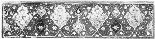 The fusion of Muhammadan doctrine with this Aryan (Persian) culture of old,[8] is an important event in the history of Art. For out of this fusion came forth into being a new phase of artistic expression completely different, in form and spirit, from its predecessors. Probably of equal importance is the fact that, although practised by divers races and subjected to many developments, fluctuations and variations, it has retained throughout the centuries its identical characteristics. What was the vital force that brought about this cultural evolution and unification? The answer appears to be Religion, as we shall see.
