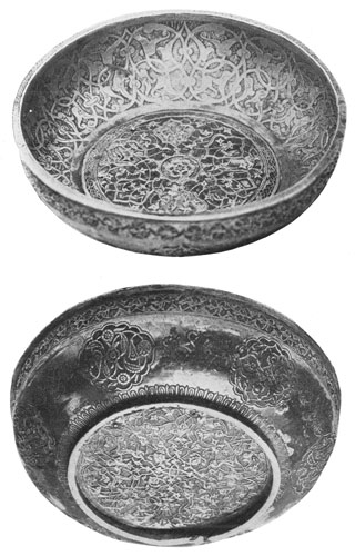 CHISELLED SILVER BOWL, DECORATED IN FILIGREE AND POLYCHROME ENAMEL. PERSIAN WORK OF THE XVITH CENTURY, PROBABLY EXECUTED IN ASIA MINOR FOR A PRINCELY OTTOMAN PATRON