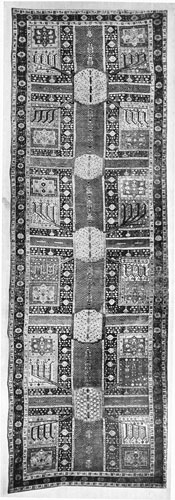 From the looms of Ispahan or the adjoining city of Joshagan. Made during the reign of Shah Suleiman (A.D. 1667-1694), upon the model of Chahar Bagh Royal Garden at Ispahan, on the grounds of which the Royal Pavilion of Hasht Bahisht (Eight Paradises) stands. The Rug measures 29 feet by 9 feet 5 inches.