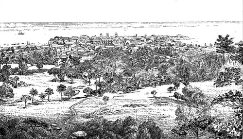Vue de la mer, la ville de Panama présente vin panorama magnifique. Elle occupe un petit monticule, formant presqu'île. Là s'accumulent les maisons et se détachent les clochers des nombreuses églises. Les palmiers, les cocotiers, les bananiers abondent comme dans les plus beaux pays de la zone torride.