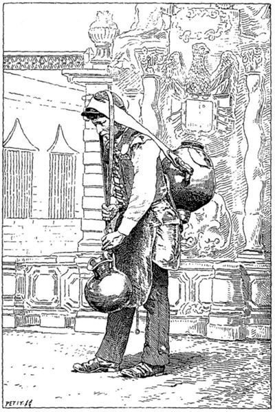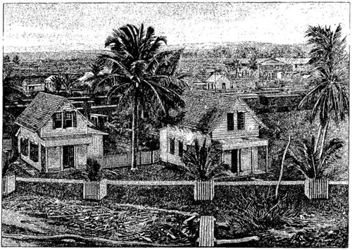À terre c'est autre chose; les maisons sont délabrées (p. 012) et plusieurs en ruine: l'herbe pousse partout, dans la saison des pluies; des dépôts de fumier par-ci par-là n'augmentent pas la salubrité de l'air; on me dit pourtant que la propreté a fait de grands progrès, et qu'il n'y a pas longtemps, tous les résidus étaient simplement jetés à la rue et y séjournaient. Une ville ainsi tenue engendrerait des miasmes et des maladies sous toutes les latitudes.