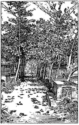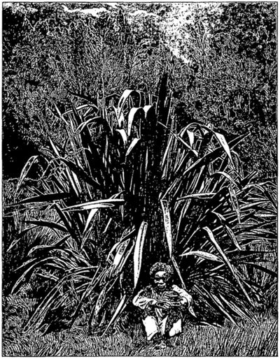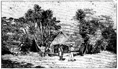 Chemin faisant, George m'explique les propriétés des diverses sortes d'eucalyptus; le white-box à feuille ronde (p. 432) n'est bon qu'à brûler, le string-bark, par sa première écorce sert à faire des toitures; sa seconde écorce est employée à former des cordes; son bois est très dur et très résistant au sec, mais pourrit à l'humidité: le red-gum, par contre, se conserve aussi bien sous terre et dans l'eau, qu'au sec. Nous voyons des vols de merles, de perroquets et des laphing-jakal (oiseau riant), espèce de geai qui imite les éclats de rire de l'homme. Ils se mettent à deux sur une même branche pour faire leur partie de rires; il est défendu de les tuer, parce qu'ils détruisent les serpents et surtout l'iguana, terrible lézard de 4 à 5 pieds de long. Des lièvres fuient devant nous, on les laisse en paix, mais on prend les corbeaux et on les empale pour éloigner les autres; ils sont grands mangeurs de raisin.
