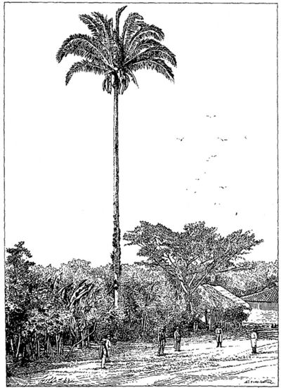 Le 29 août, à 10 heures du matin, le navire se met en marche pour descendre la rivière.—Descendre est plus difficile en ce moment que remonter à cause de la marée, qui établit le courant inverse. Les bords du Guayaquil sont ravissants: les cocotiers, les bambous, les manguiers forment une forêt vierge impénétrable. On voit bien par-ci par-là quelques chalets qui indiquent l'élevage du bétail; mais la presque totalité de ces magnifiques terrains n'est pas utilisée. Le long du rivage nous voyons quelques crocodiles qui se chauffent au soleil (p. 009) dans la boue. Ils sont très nombreux ici, et vivent grassement des bancs de poissons qui remplissent la rivière. Ils déposent leurs œufs sur les bords et sous le sable pour que le soleil les fasse éclore. Heureusement, les galinassos en sont gourmands et en dévorent un grand nombre. On tire ici le caïman pour s'amuser, on utilise sa graisse comme remède pour les foulures des chevaux; mais on n'a pas encore appris à utiliser sa peau. Les Indiens sont habiles à les tuer avec un coutelas. Lorsqu'ils aperçoivent le crocodile, ils prennent un chapeau de paille et entrent dans l'eau jusqu'au cou. L'horrible bête s'avance pour engloutir la tête, mais l'Indien alors plonge, et pendant que le caïman mord le chapeau, lui, par-dessous, lui ouvre le ventre. Cette manière de tuer le crocodile est nommée le jeu de la pezéta, parce que l'Indien l'exécute à volonté pour une pezéta (1 fr.). Quelquefois, il va le chercher dans l'eau; il sait qu'au fond il n'attaque pas; il le touche sous le ventre, et pendant qu'il se relève, il passe dessous une corde, et sortant de l'eau, il le tire à terre, où il le tue à coups de rame ou de couteau.
