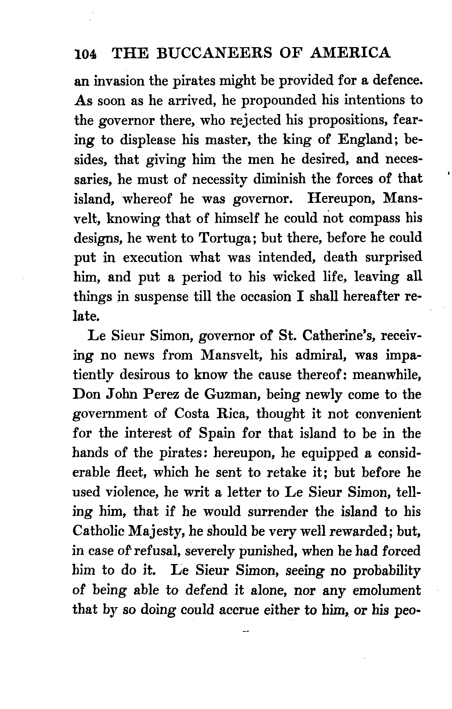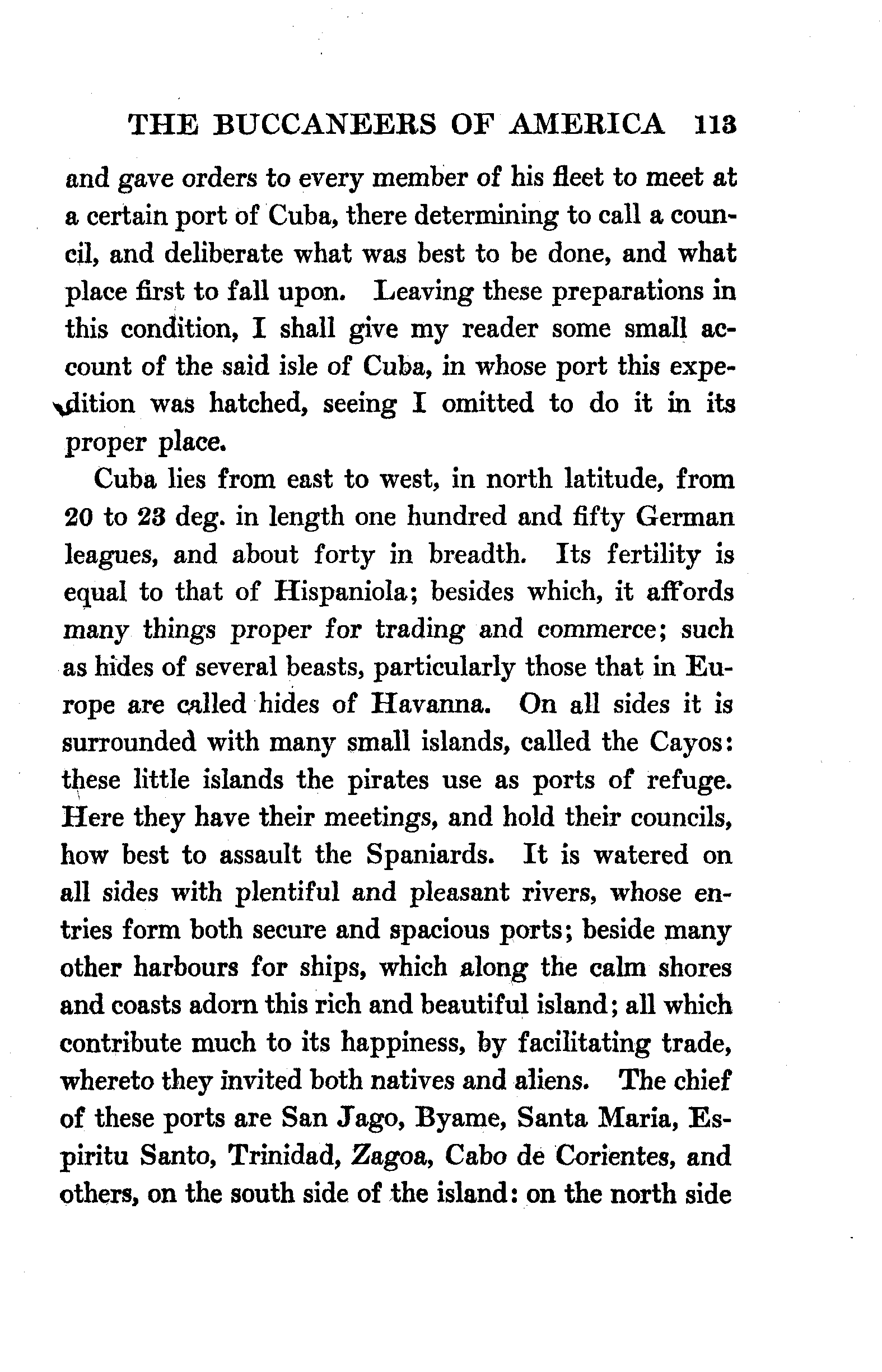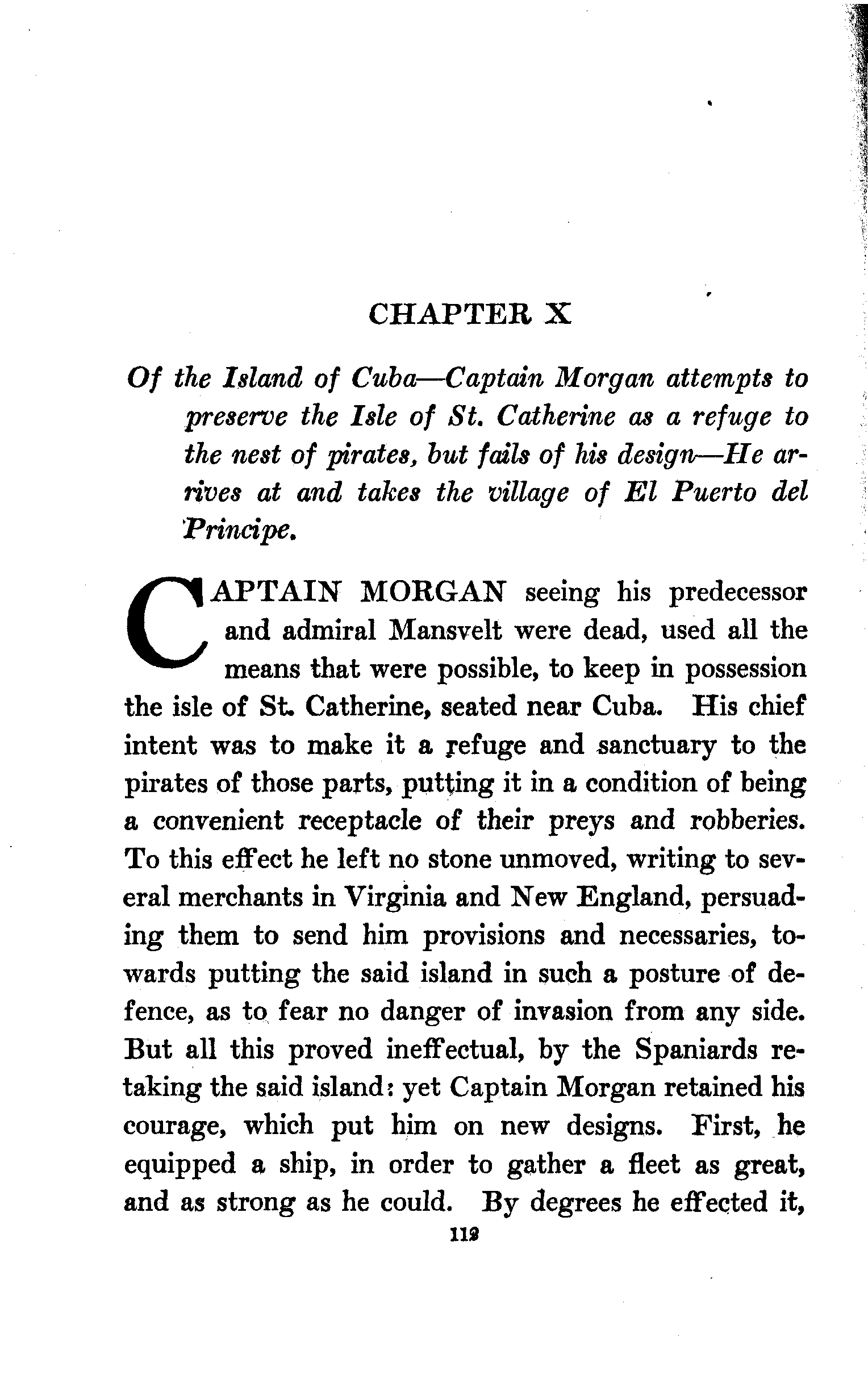 | Of the Island of Cuba—Captain Morgan attempts to preserve the Isle of St. Catherine as a refuge to the nest of pirates; but fails of his design—He arrives at, and takes, the village of El Puerto del Principe | 112 |