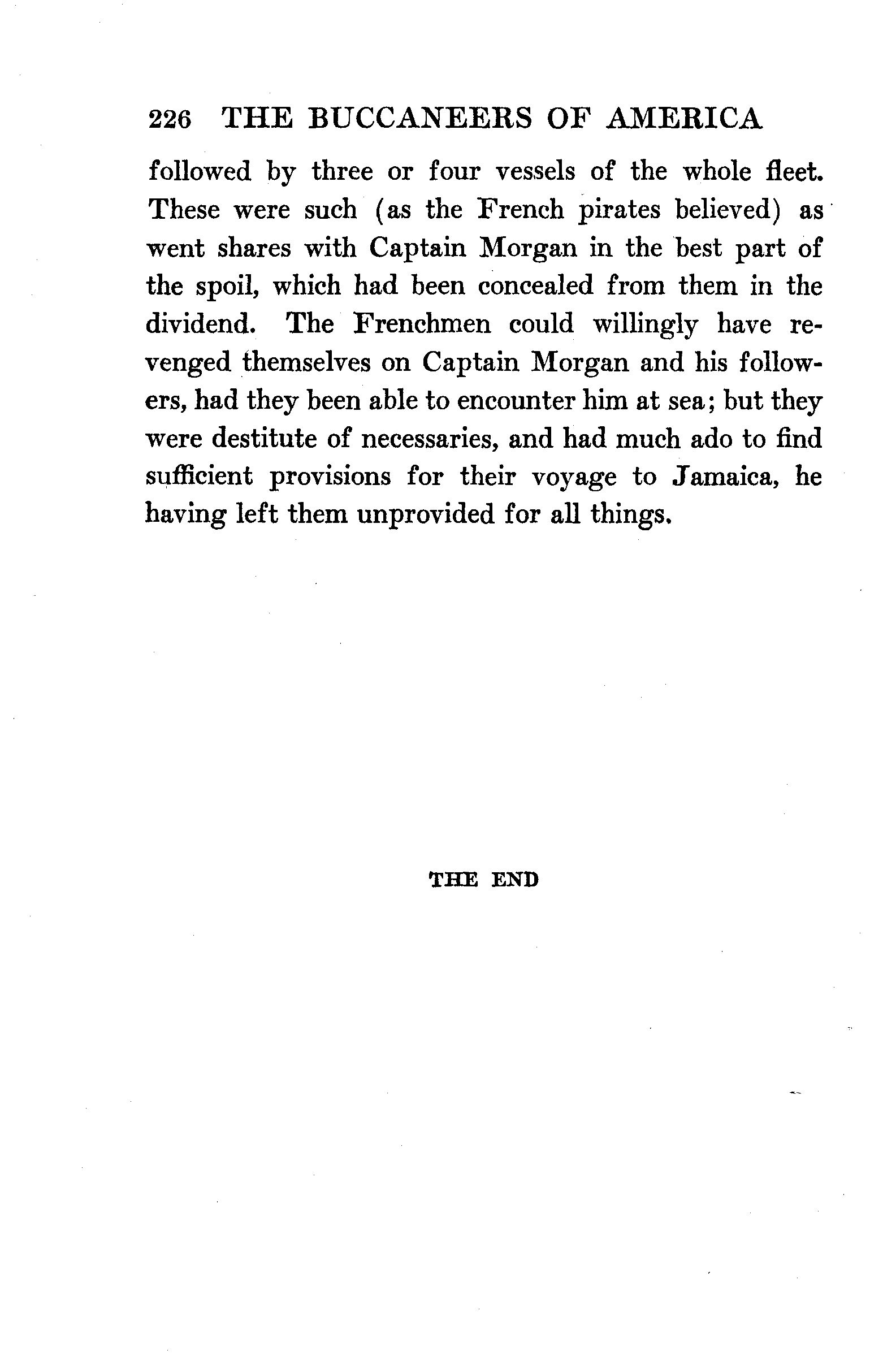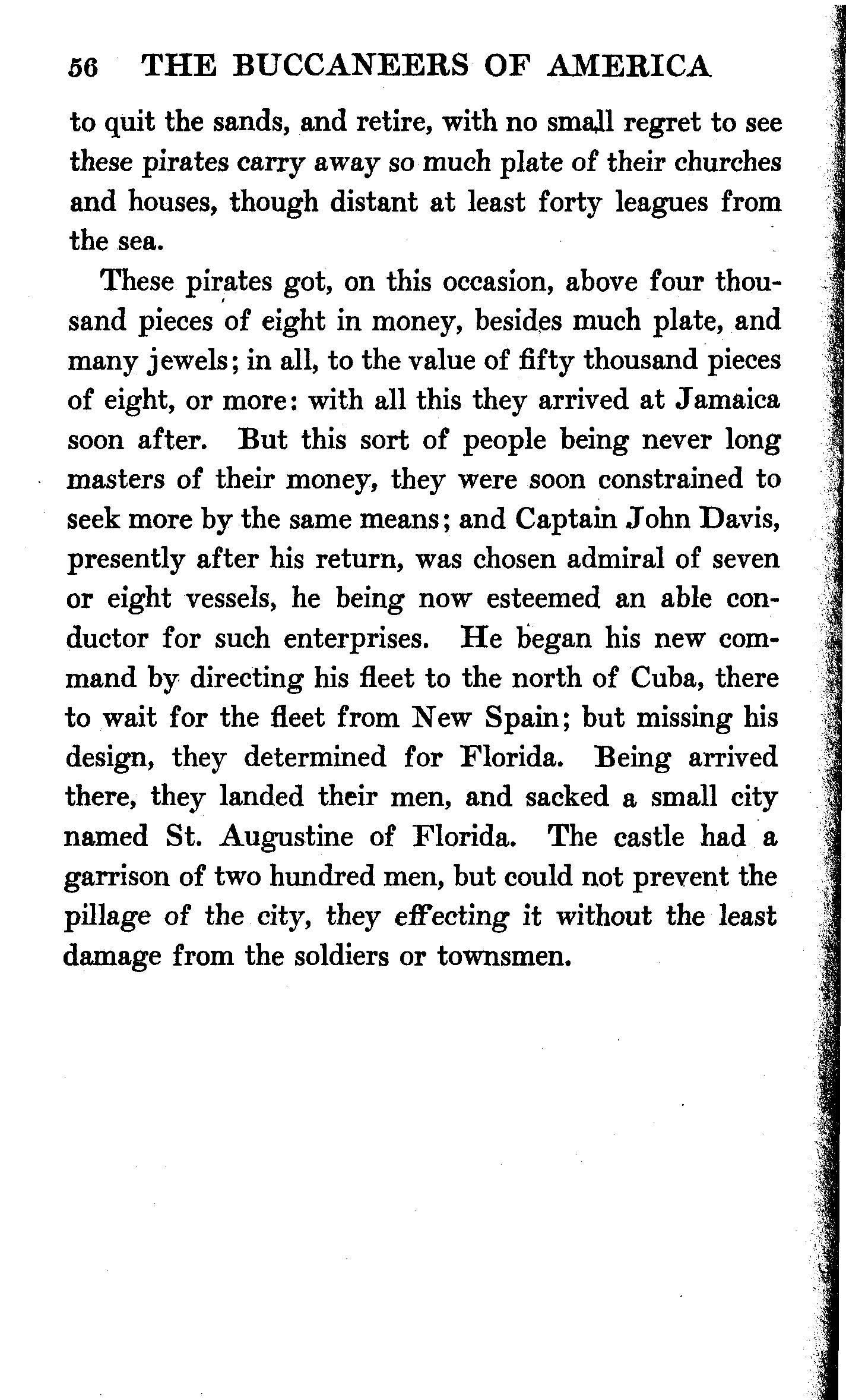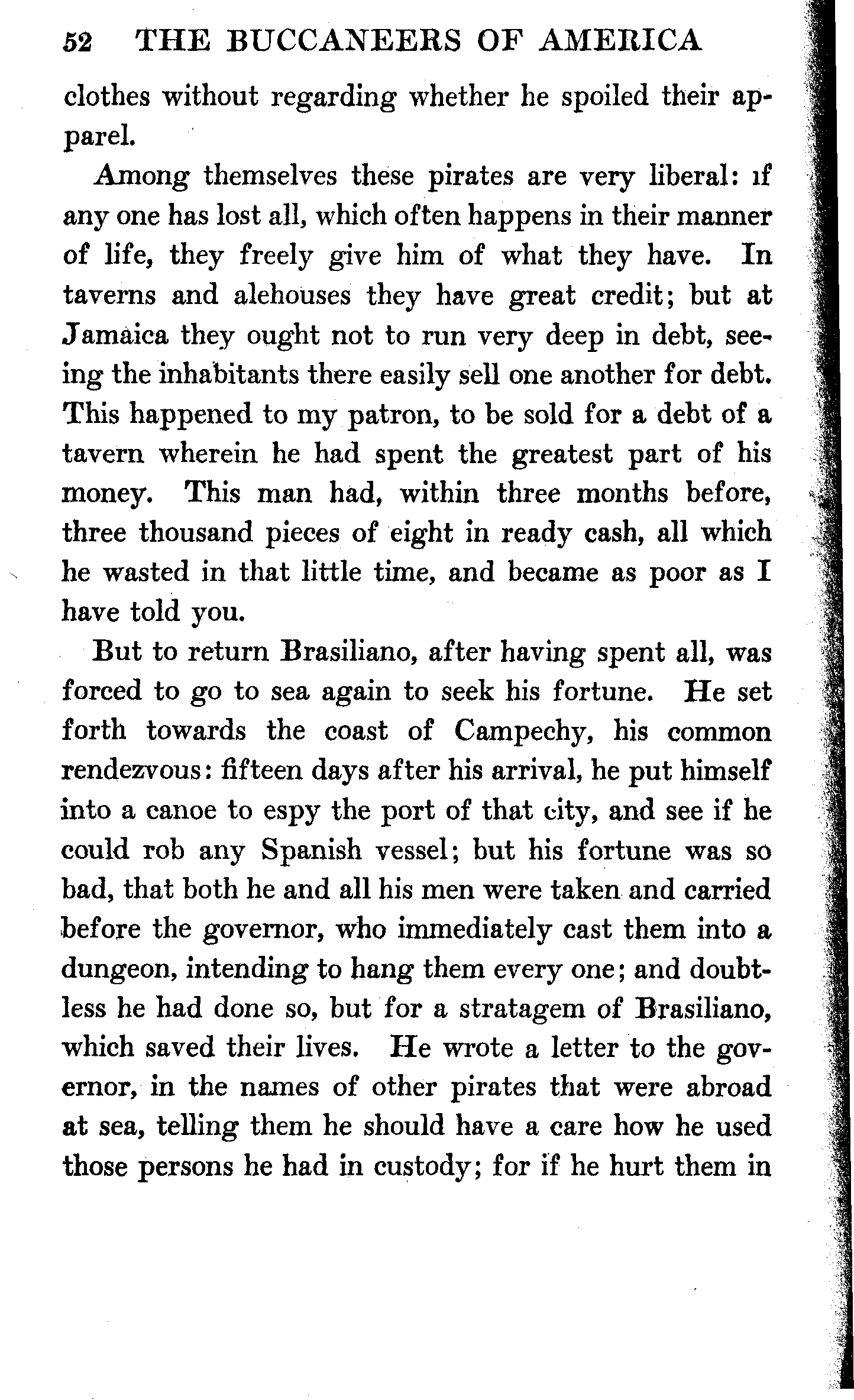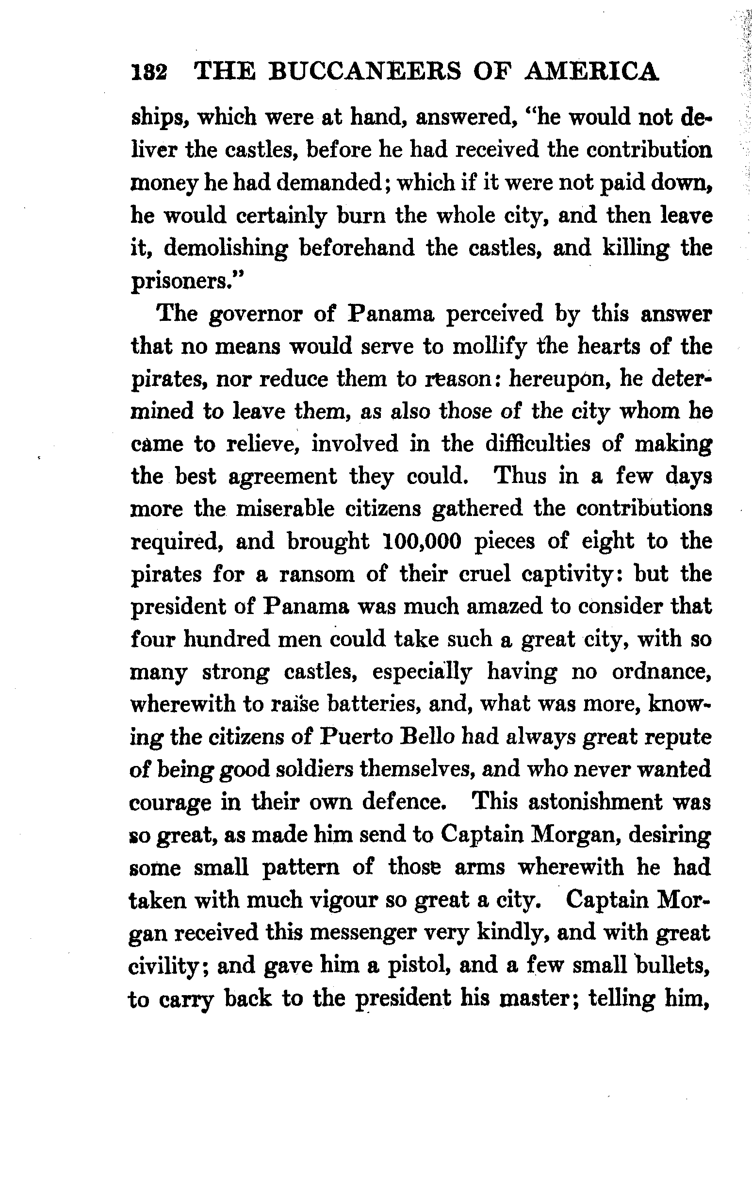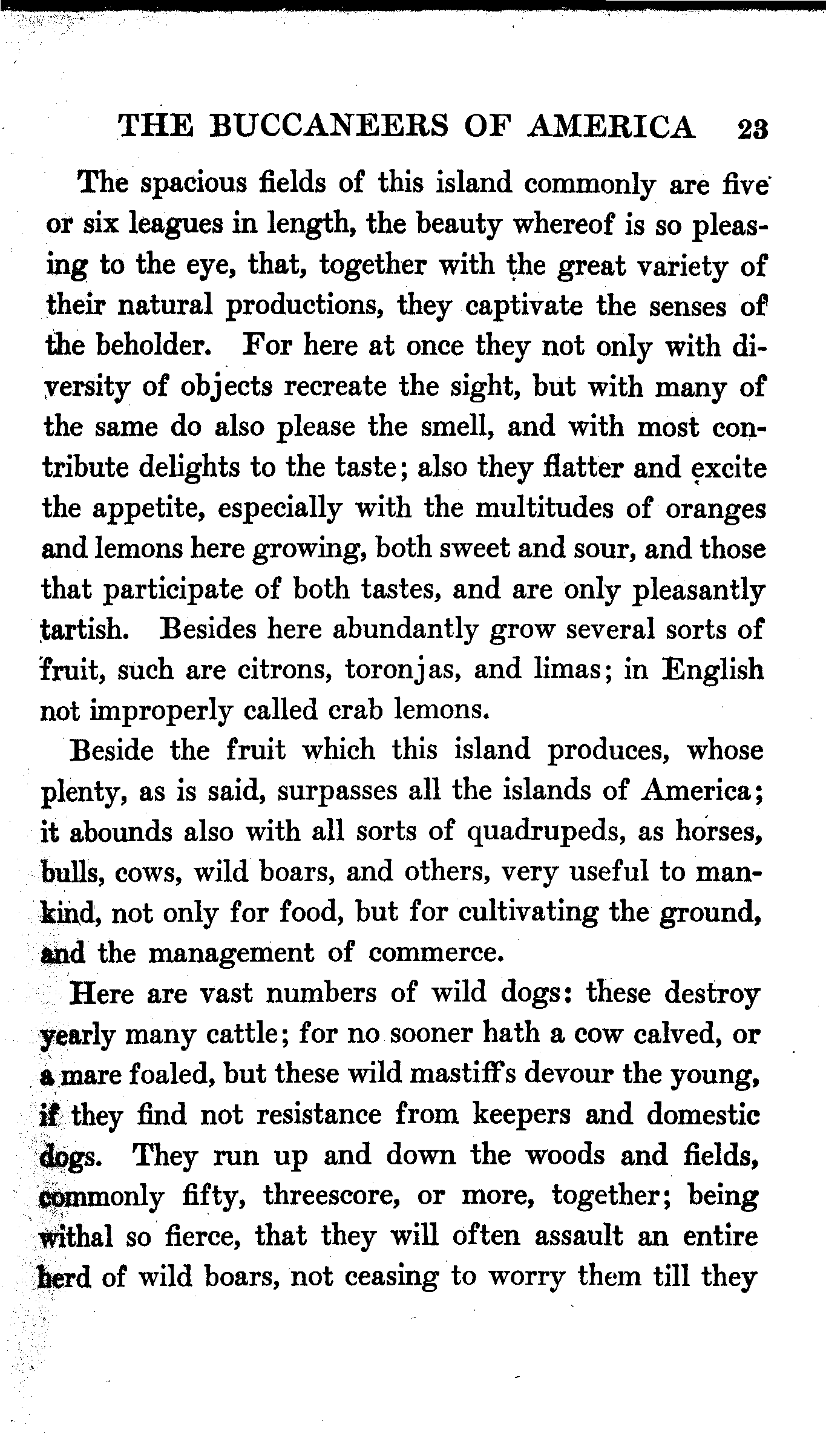 From time to time new editions of this work have been published, but in many cases much new material, not always authentic, has been added and the result has been to mar the original narrative as set forth by Esquemeling. In arranging this edition, the original English text only has been used, and but few changes made by cutting out the long and tedious description of plant and animal life of the West Indies of which Esquemeling had only a smattering of truth. But, the history of Captain Morgan and his fellow buccaneers is here printed almost identical with the original English translation, and we believe it is the first time this history has been published in a suitable form for the juvenile reader with no loss of interest to the adult.