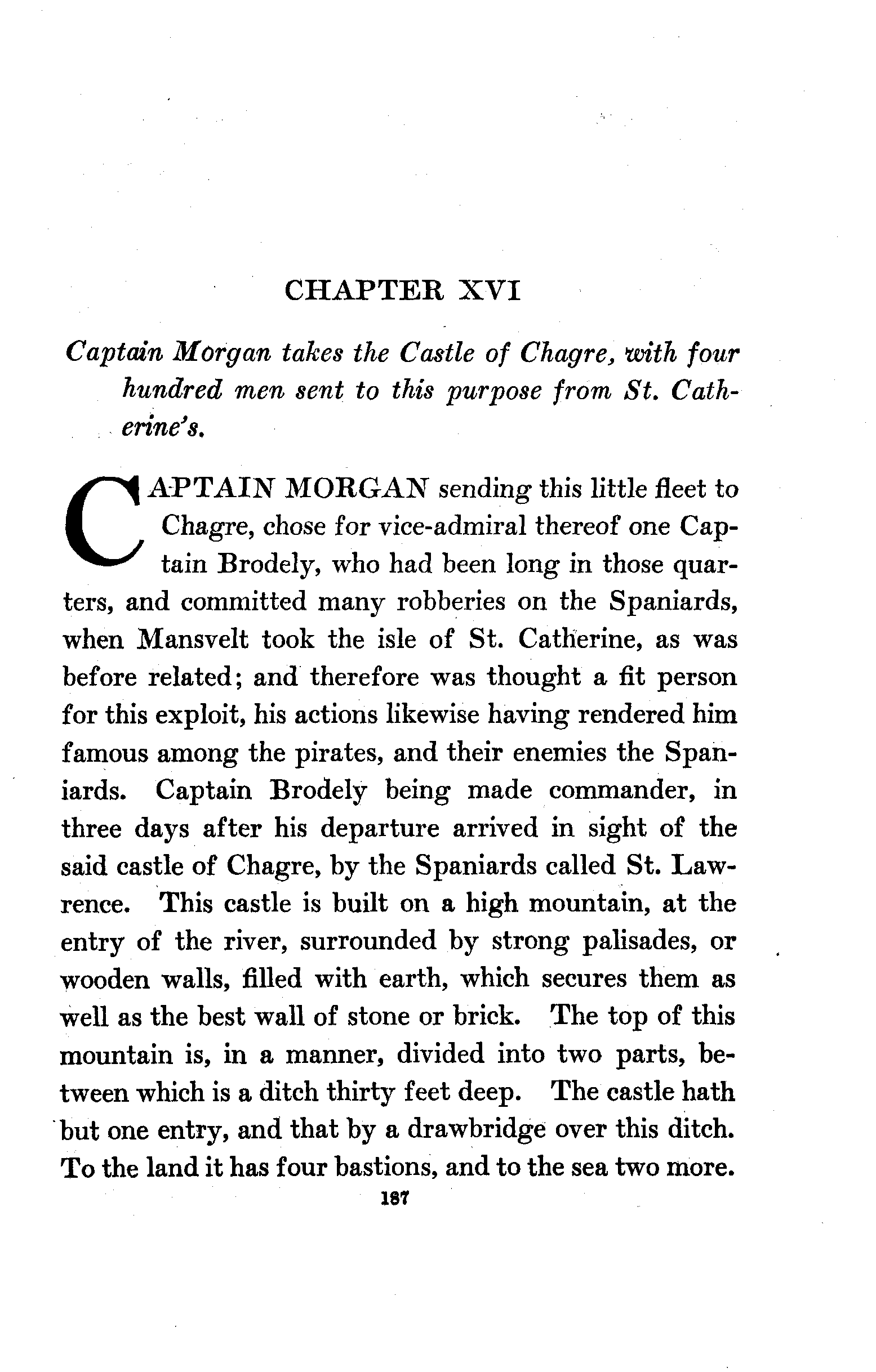 | Captain Morgan takes the Castle of Chagre, with four hundred men sent to this purpose from St. Catherine's | 187 |