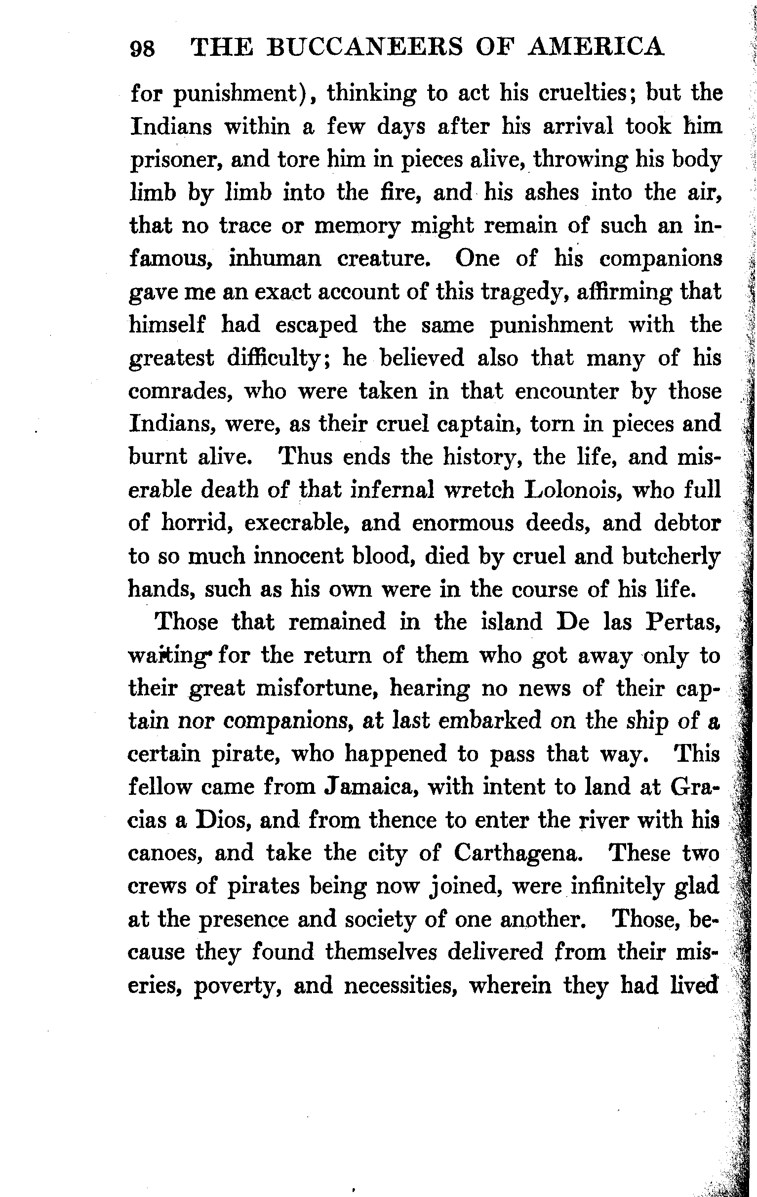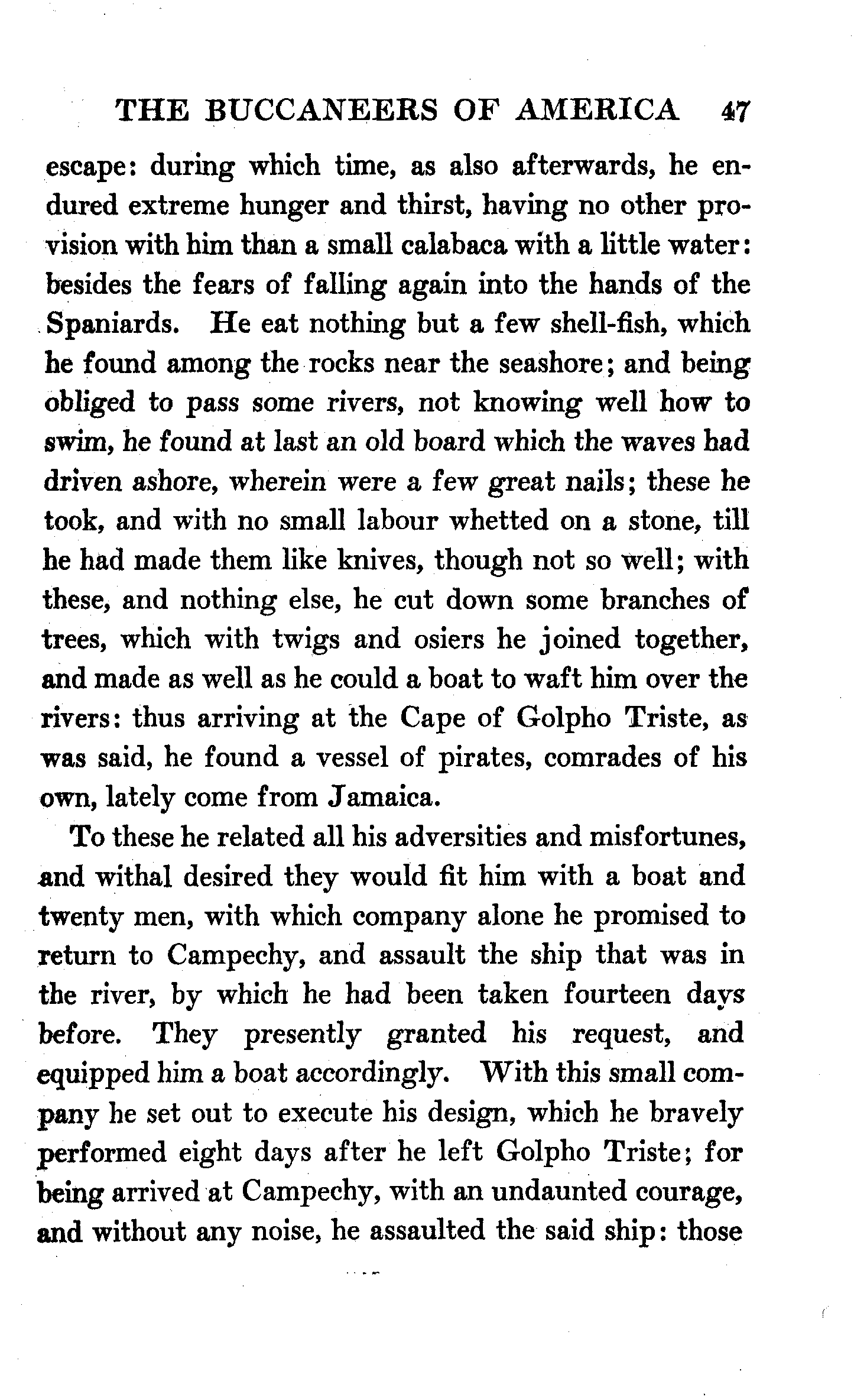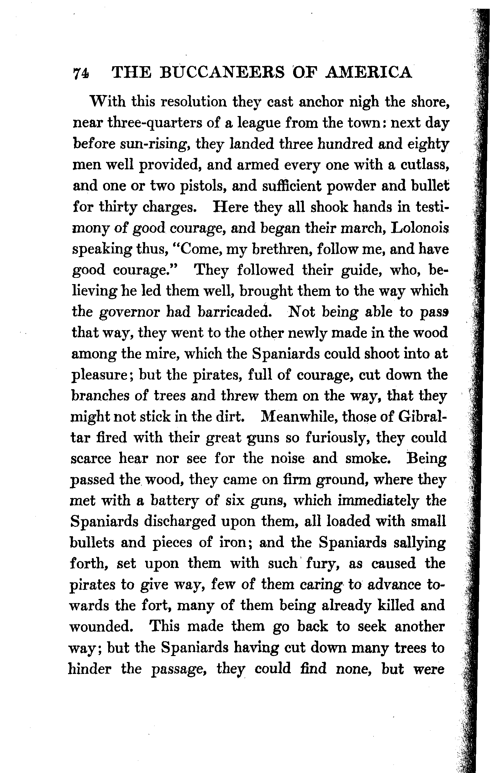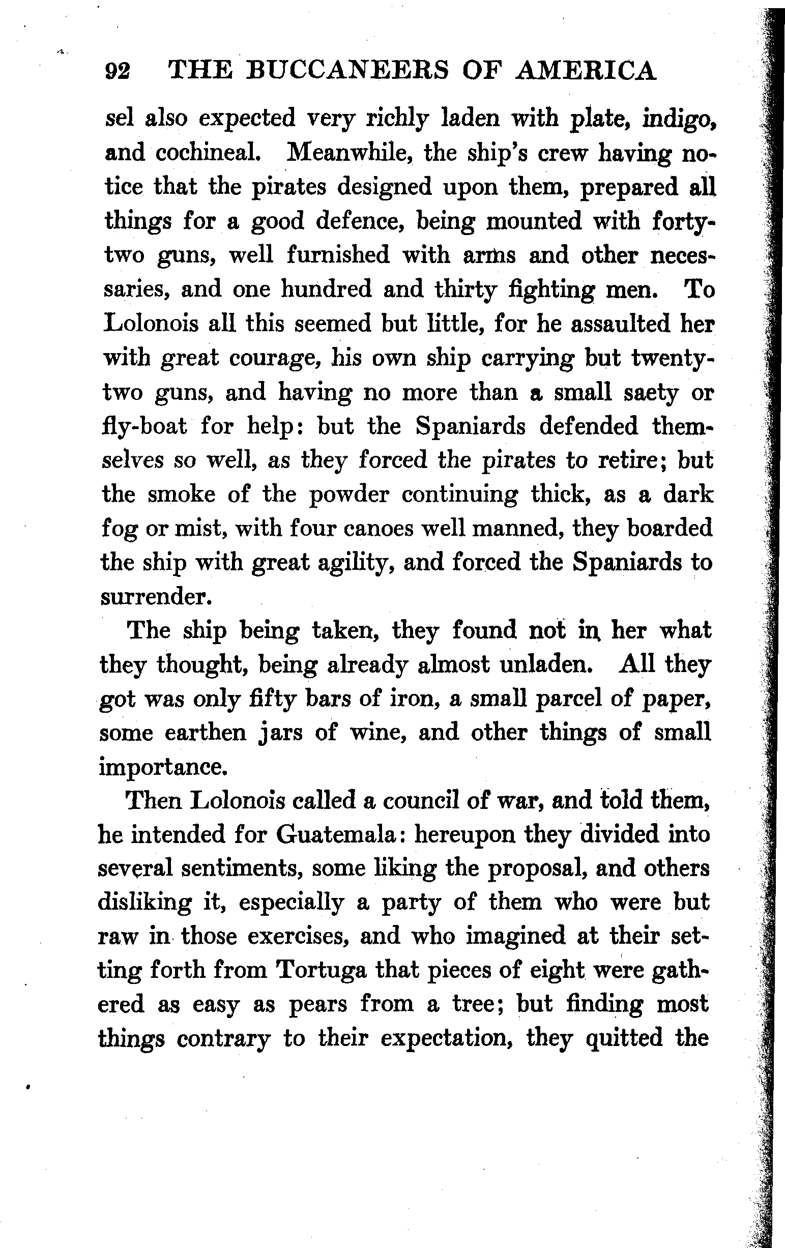 | "Lolonois, with those that remained, had much ado to escape aboard their boats" | 96 |