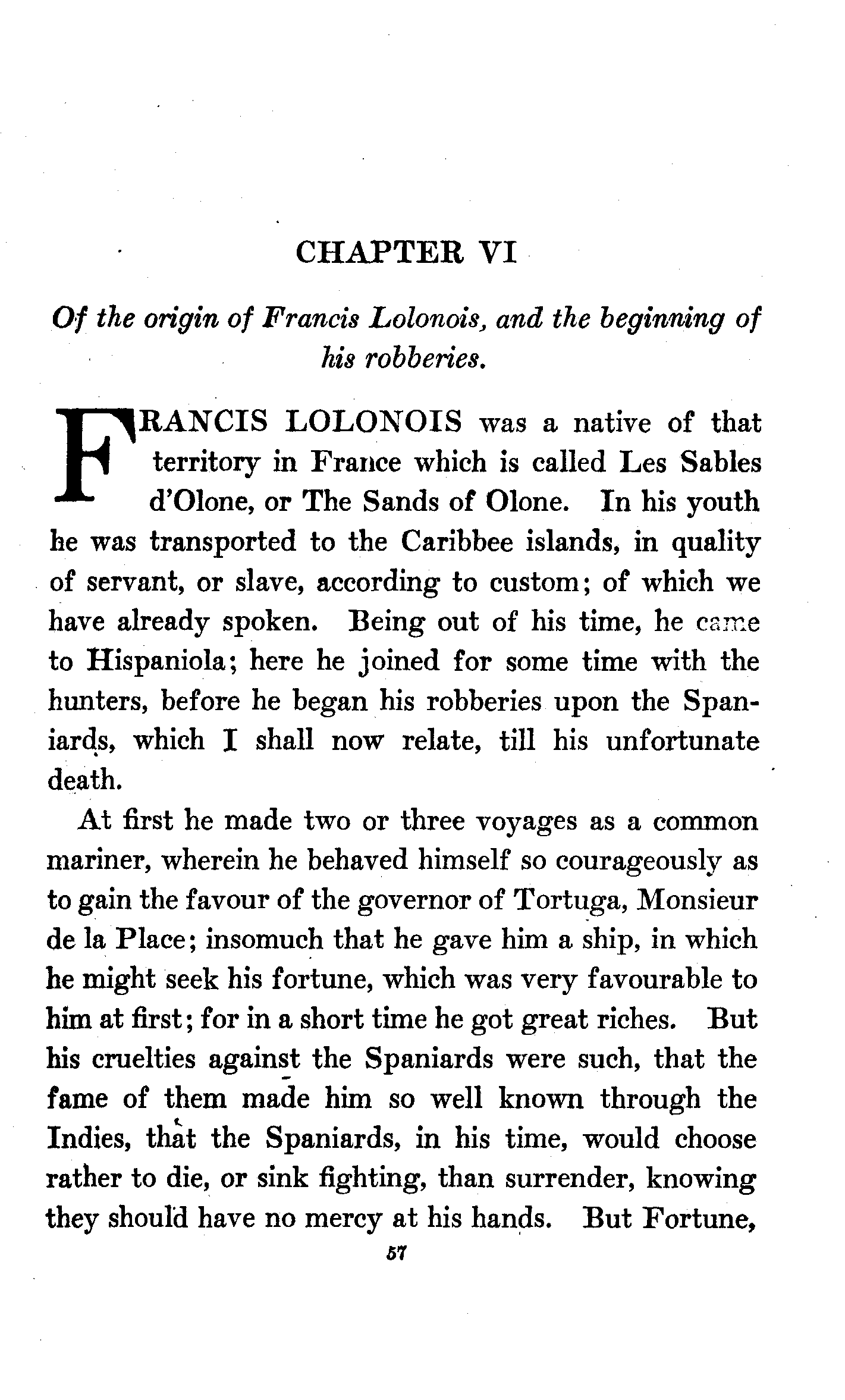 | Of the origin of Francis Lolonois, and the beginning of his robberies | 57 |